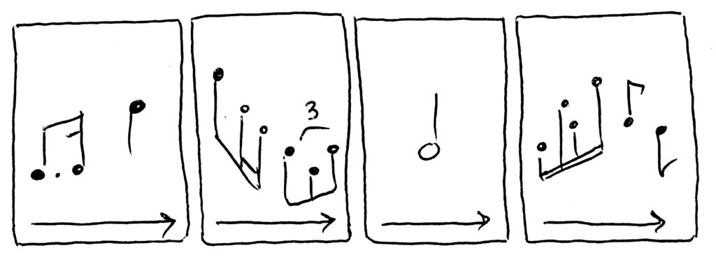 - Les codes-dessins et leurs valeurs relatives : “ça dure 2 temps, ça dure 4 temps…”