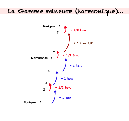 Ainsi, en croisant le nom de la tonique et la structure de la gamme, on peut reconstruire l’échelle des 7 notes dont on va se servir.